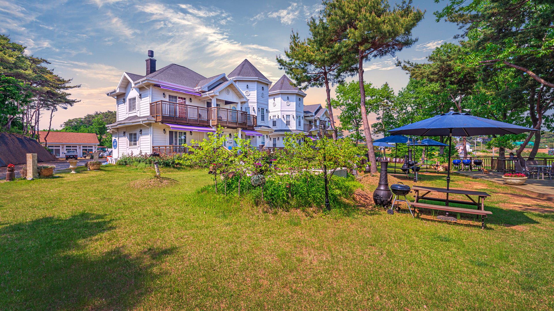 그리고 특별히 채택된 낭만적인 바비큐 가드닝 에리어는 카페를 겸한 작은 미술관과 연결되어 시인의 섬의 테마인 올드 앤 뉴를 충족시키고 있습니다.
