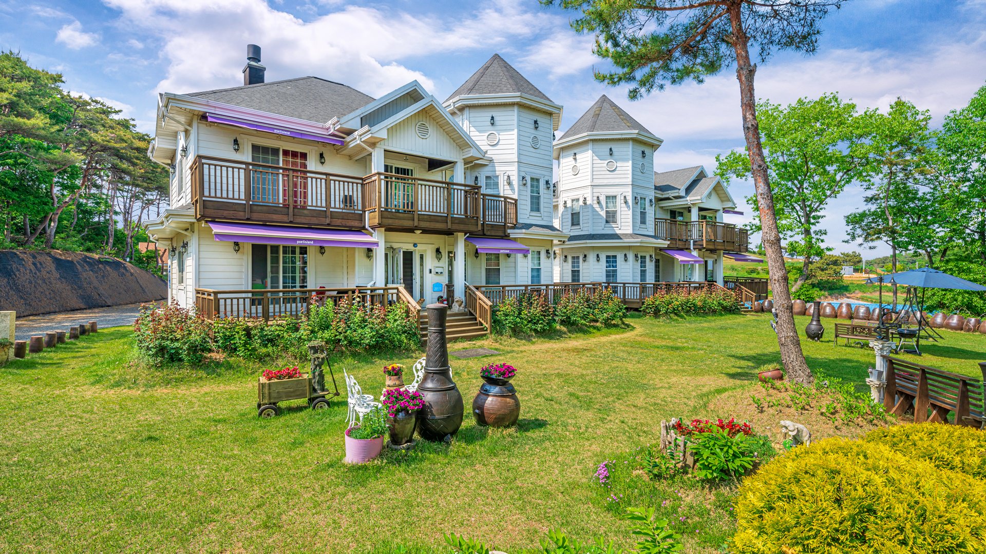 앙드레 가뇽의 피아노 선율 같은 느낌으로 디자인된 시인의 섬 펜션은 우아하고 기품 있는 샬레로써 아름다운 안면도 바다가 한 폭의